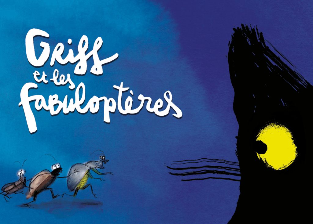 GRIFF ET LES FABULOPTÈRES raconte la rencontre entre Griff, un chat chanteur sur les toits de la ville, et le monde souterrain des insectes. Griff, tapi dans les herbes hautes, écoute et observe avec curiosité la vie qui de déroule sous ses pattes. Il entend de la musique et des bruits bizarres monter des galeries creusées sous terre. C’est le monde des Fabuloptères. Le cordonnier est au travail, Monsieur Sauterelle et Madame Scarabée dansent un tango enflammé. Quelle drôle de fête se joue là-dessous ?